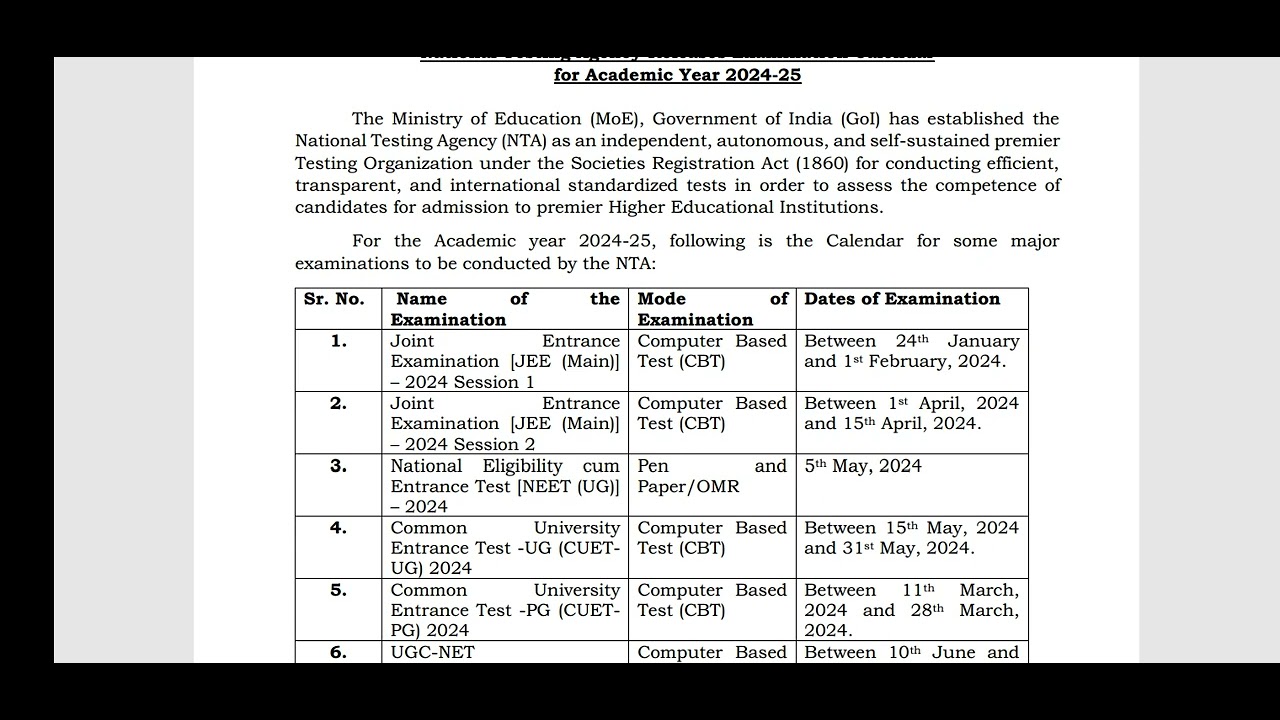 NTA Announced Examination Calendar 2024 25 | Neet Ug 2024 Exam