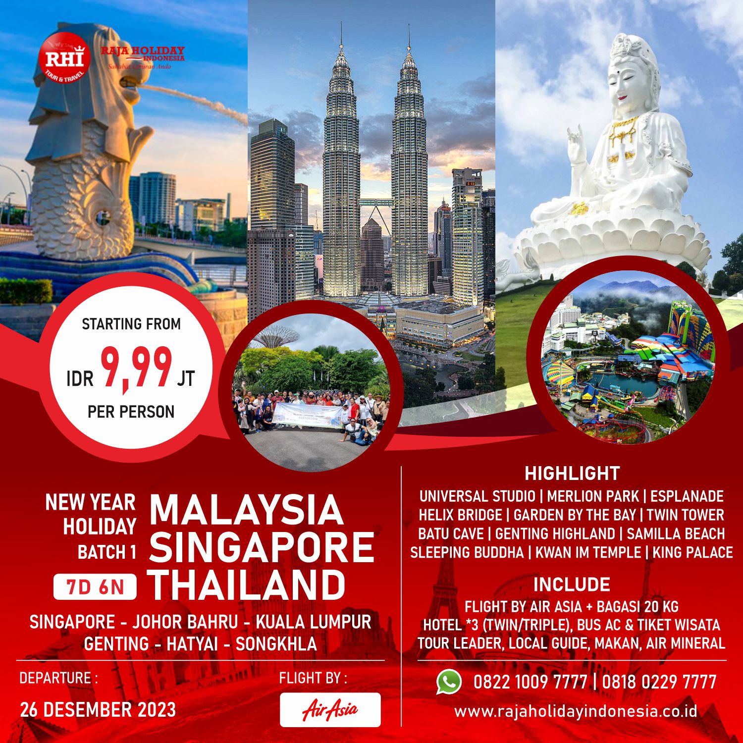New Year 2024 Tour 3 Negara Singapore Malaysia Thailand 7D6N