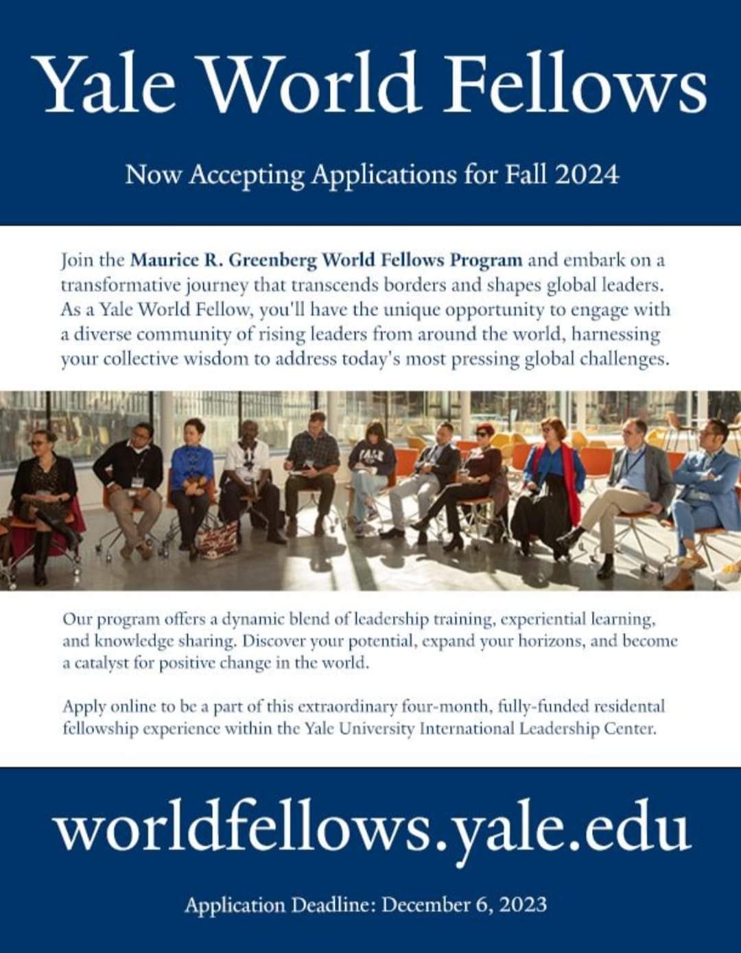 OPPORTUNITIES FOR YOUTH on X: “2024 Yale World Fellows Program